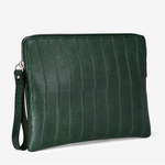 La pochette en cuir mélange est un accessoire raffiné et sophistiqué qui combine le cuir grainé et le cuir d’alligator pour un look unique et élégant.